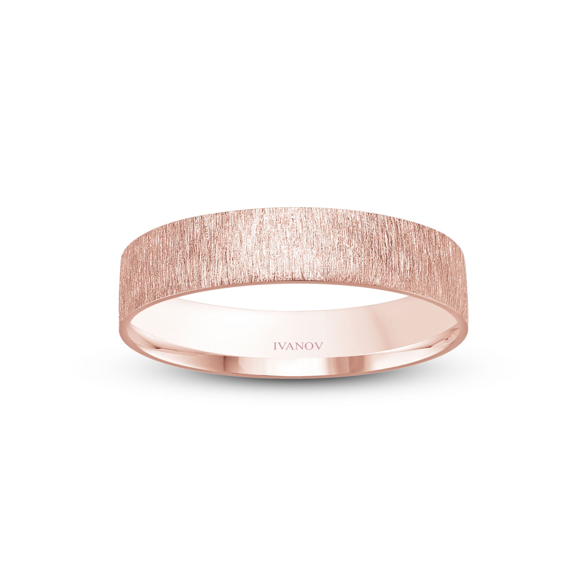 The Vector — 14K Gold Wedding Ring, Flat Style, Flap Finish, 4mm Width