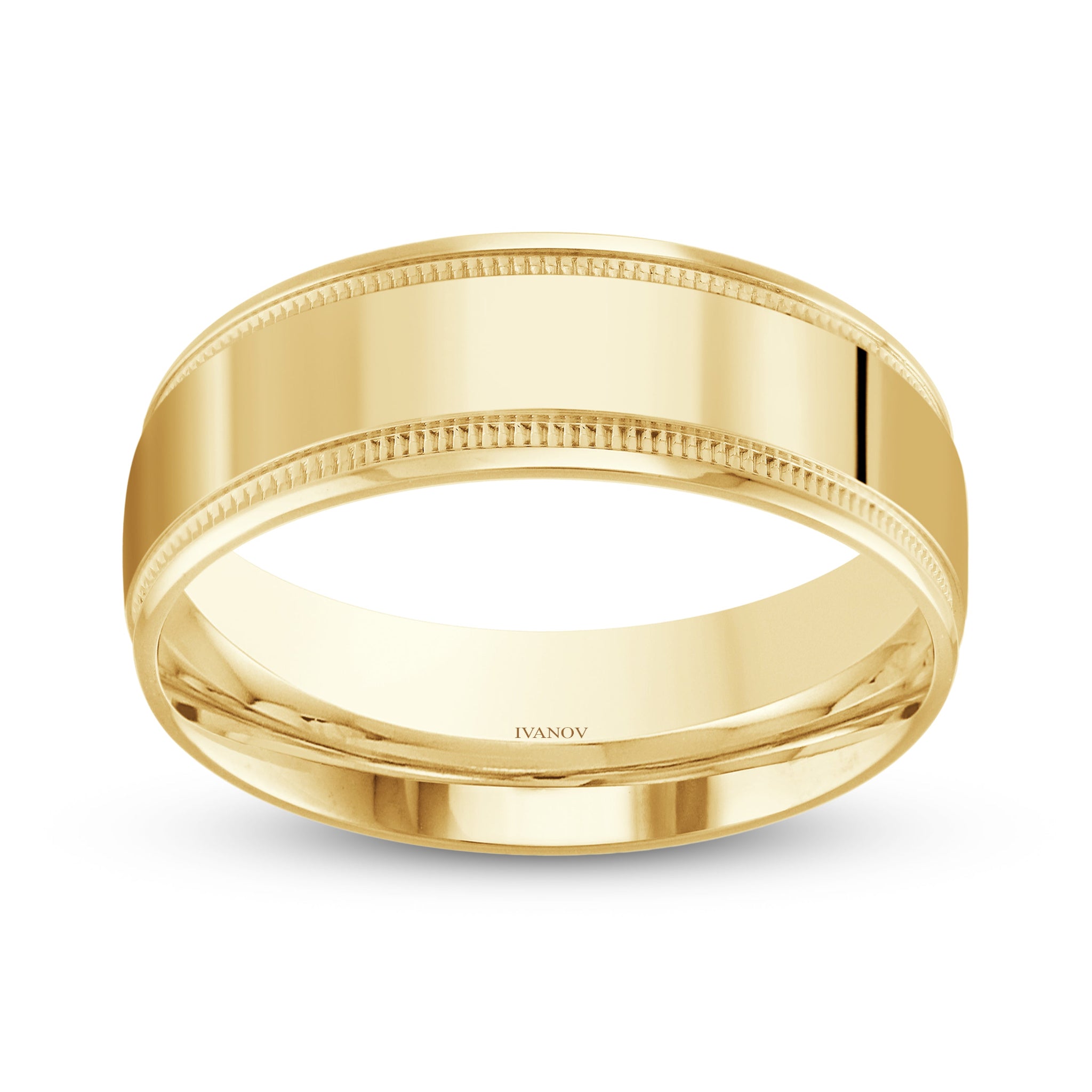 14k Gold Wedding Band 8mm Dome Milgrain - Asterios