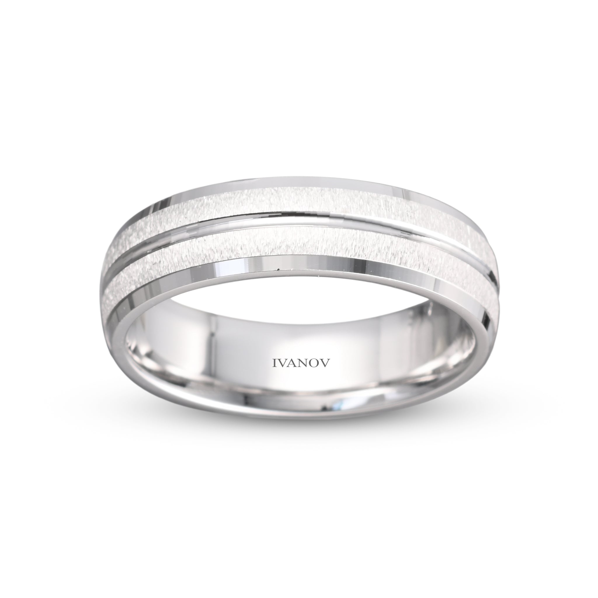 Elevate your wedding band with our Golden Facet wedding band from Ivanov Jewelry. Crafted with 14k solid gold in a brushed finish, this ring features a unique faceted design on the center of the band with polished edges for a sleek and modern look. The domed style provides a comfortable fit for all-day wear. Perfect for men, this 6mm width band is a heartfelt gift for any cherished moment. Choose a symbol of everlasting love and commitment with our Golden Facet wedding band.
