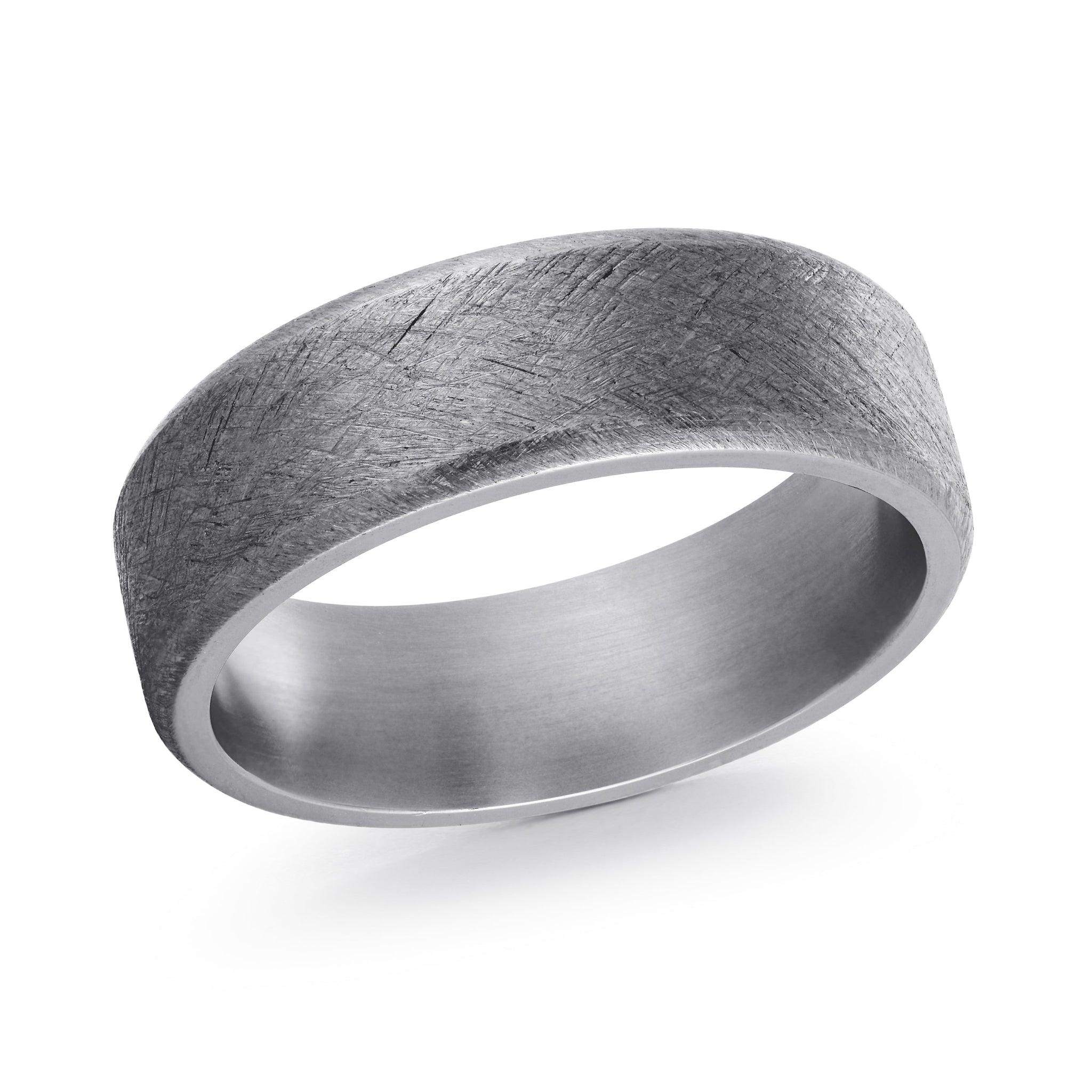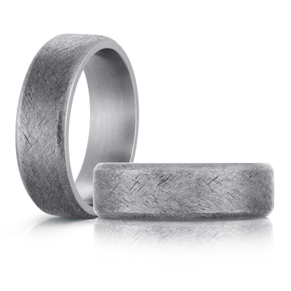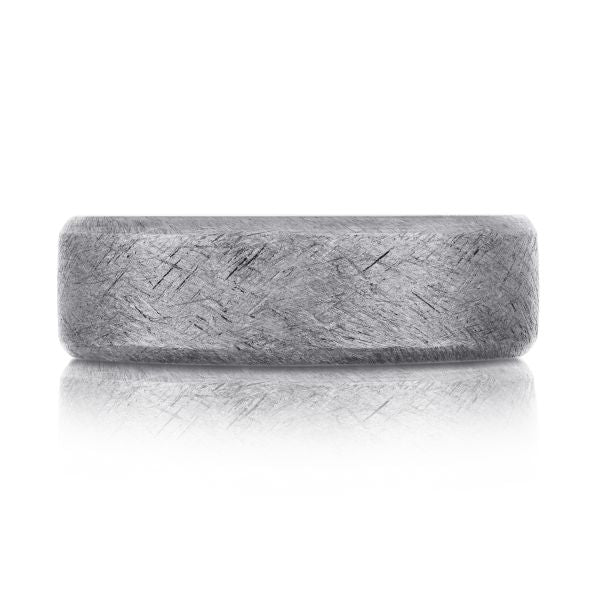 This appeals to guys who want maximum impact from their wedding ring. Nothing subtle about a 7mm flat tantalum band with heavy texture. Looks like it belongs on someone who works with their hands, not sits at a desk all day.