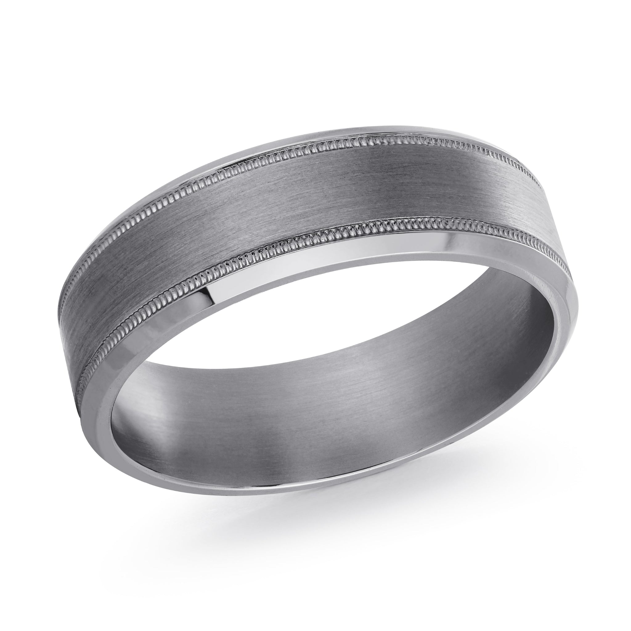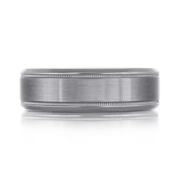 Premium Tantalum Wedding Ring with Brushed Center and Mill Grain Beveled Edges - 7mm Widt