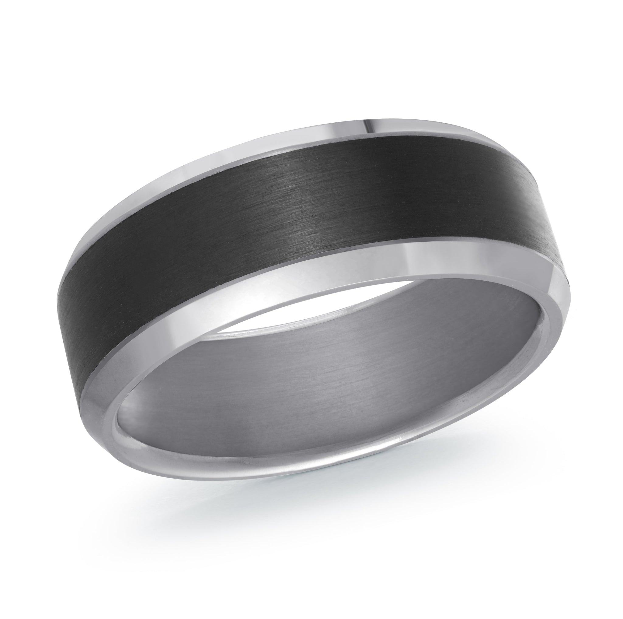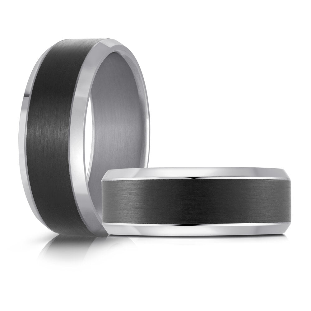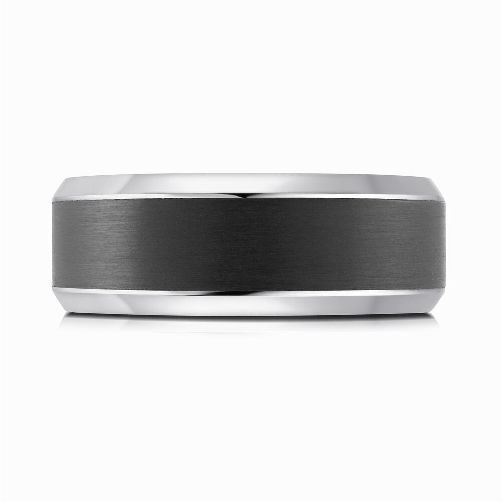 Tantalum Men's Wedding Band with Black Brushed Carbon Fiber Center and Beveled Edges - 6mm & 8m