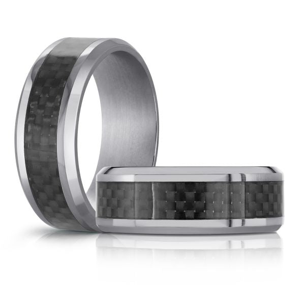Premium Tantalum Men's Wedding Band with Carbon Fiber Inlay and Polished Beveled Edges - 8mm Width