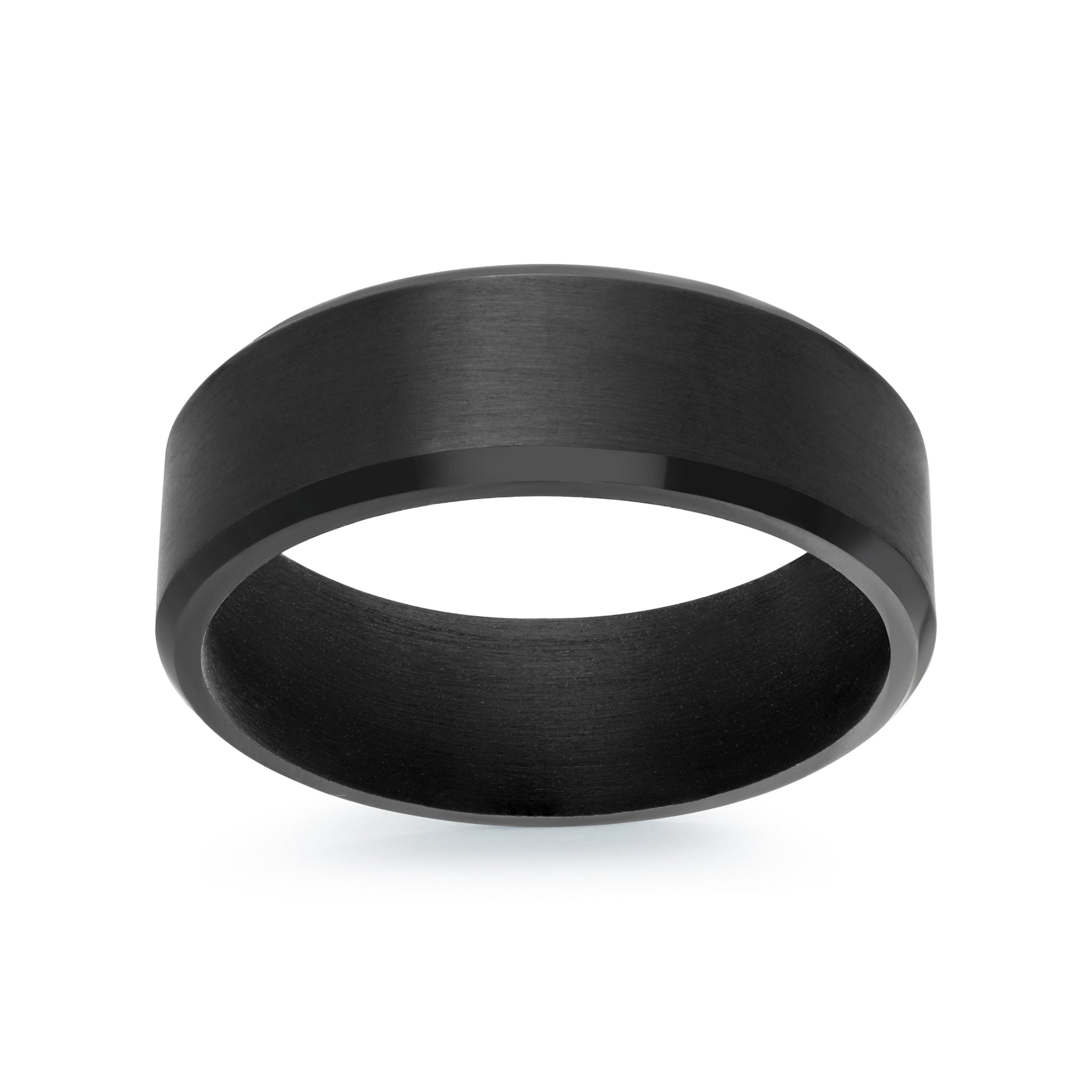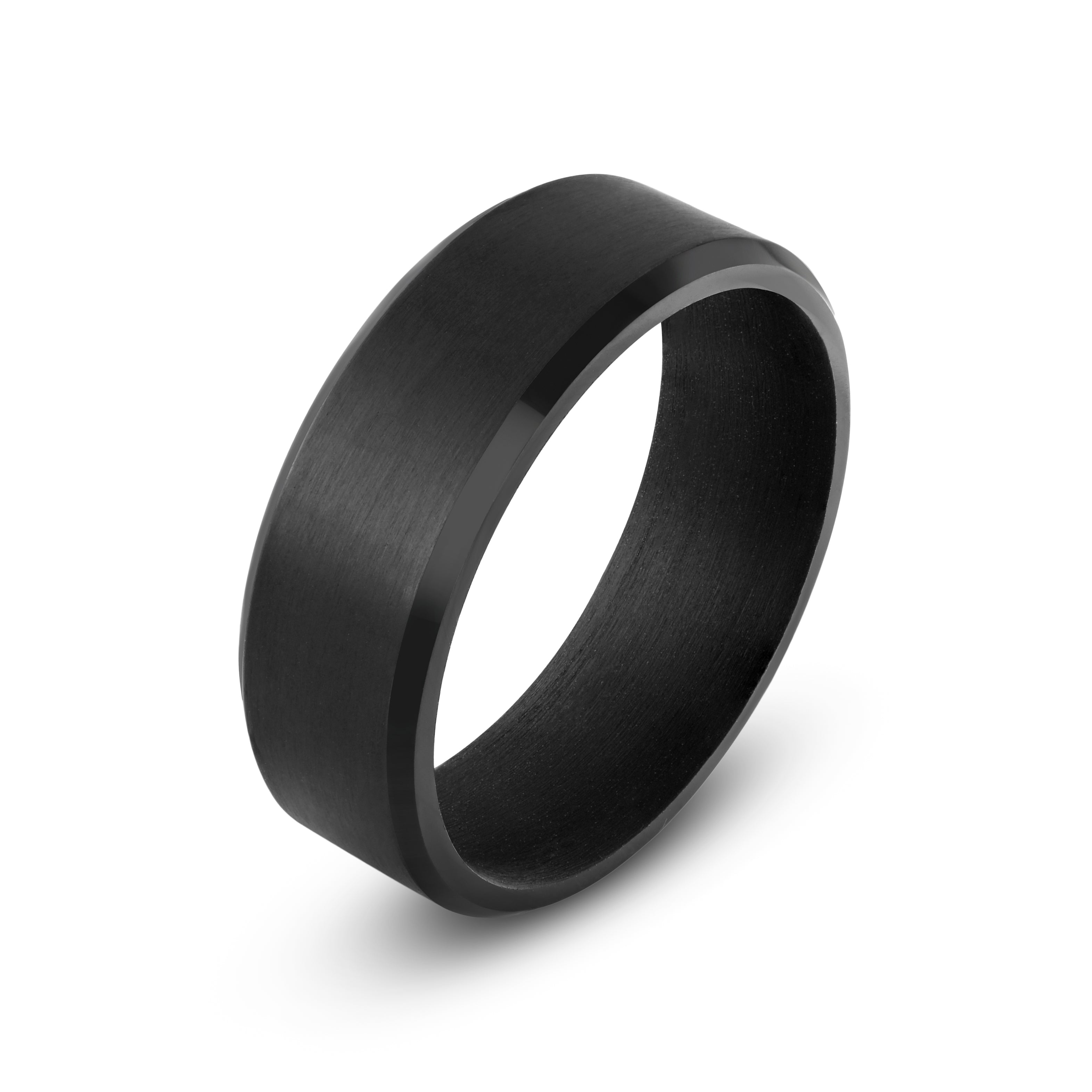 Black Titanium Men's Wedding Ring with Brushed Center and Polished Beveled Edges - 7mm Widt