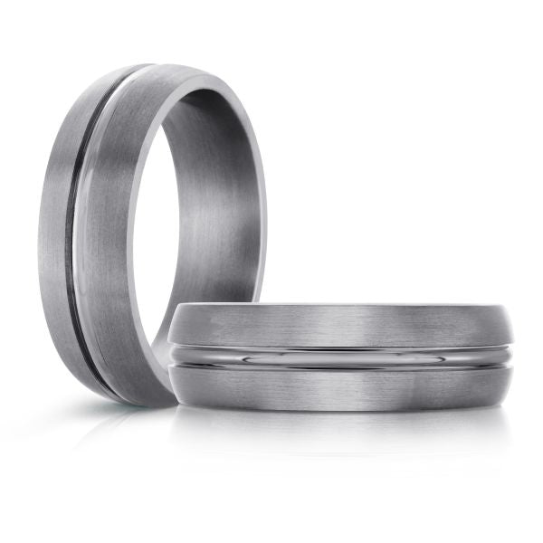 Premium Tantalum Men's Wedding Band with Brushed Domed Profile and Polished Center Groove - 7mm Width