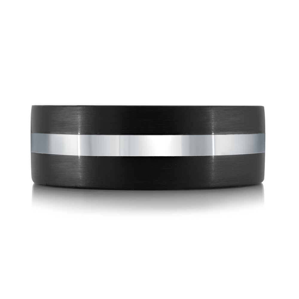 Tantalum Men's Wedding Band with Black Brushed Carbon Fiber Top Inlay - 8mm Width
