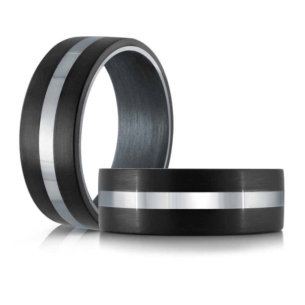 The Parallax - Tantalum Ring with Black Brushed Carbon Fiber Inlay