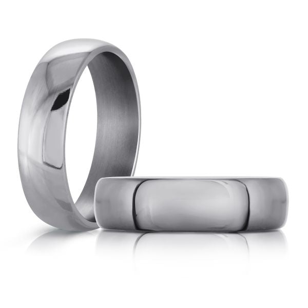 Premium Polished Tantalum Men's Wedding Band with Traditional Domed Profile - 6.5mm Widt