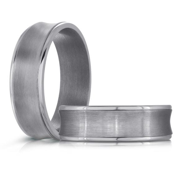Premium Tantalum Men's Wedding Band with Brushed Concave Center and Polished Edges - 7mm Widt