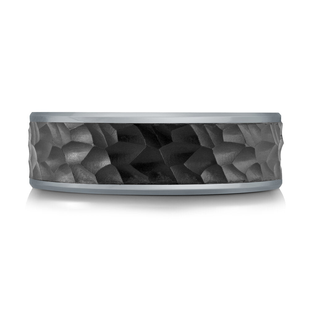 Tantalum Men's Wedding Band with Black Hammered Carbon Fiber Center Inlay - 7mm Width