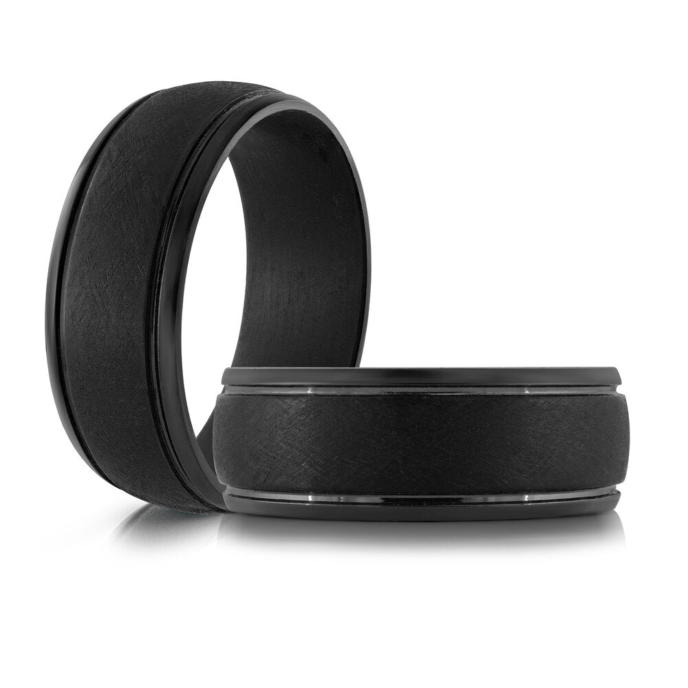Black Tantalum Men's Wedding Band with Brushed Center and Polished Grooved Edges - 8mm Width